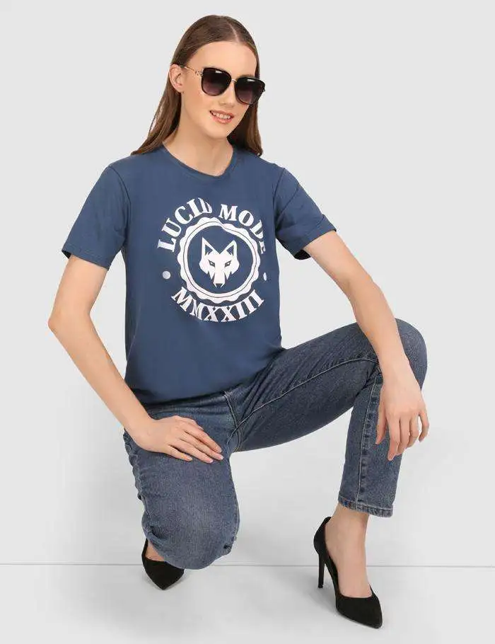 NAVY BLUE PRINTED REGULAR T-SHIRT